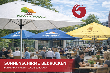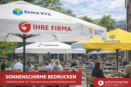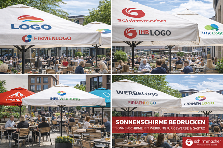Werbe-Sonnenschirme für Gewerbe und Gastronomie: Wie Schirmmacher Sonnenschirme mit Logo in echte Markenflächen verwandelt